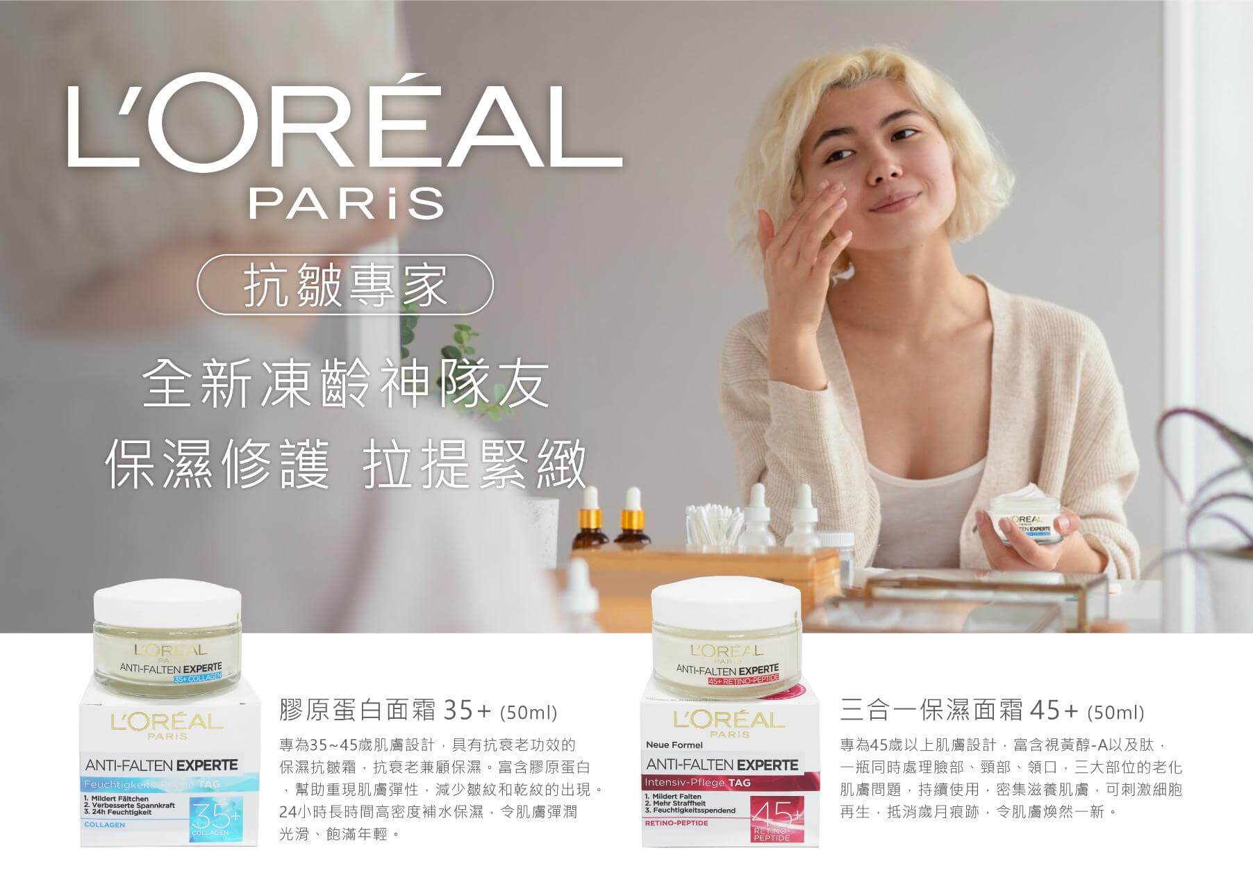 - 主商品:LOREAL 35+ 膠原蛋白面霜 50ML X 2瓶