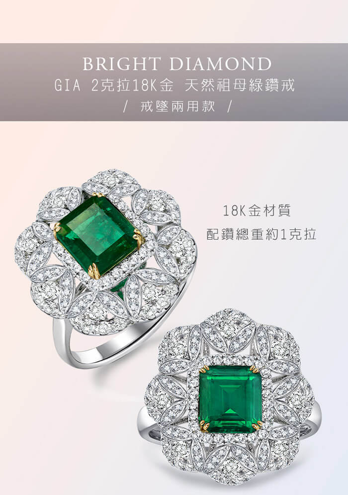 - 主商品尺寸/規格/重量:祖母綠戒:2.00CT(含)以上/重量:6g(含)以上(已鑲件)(含鍊) 配鑽總重:1.00CT