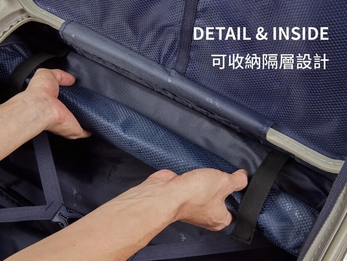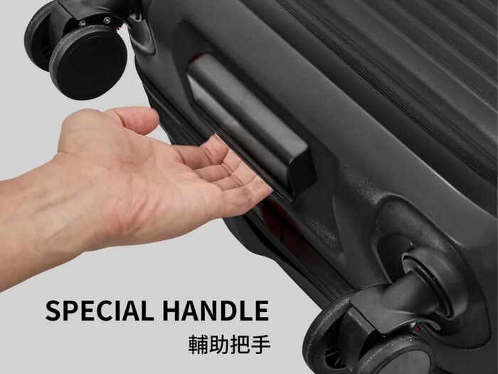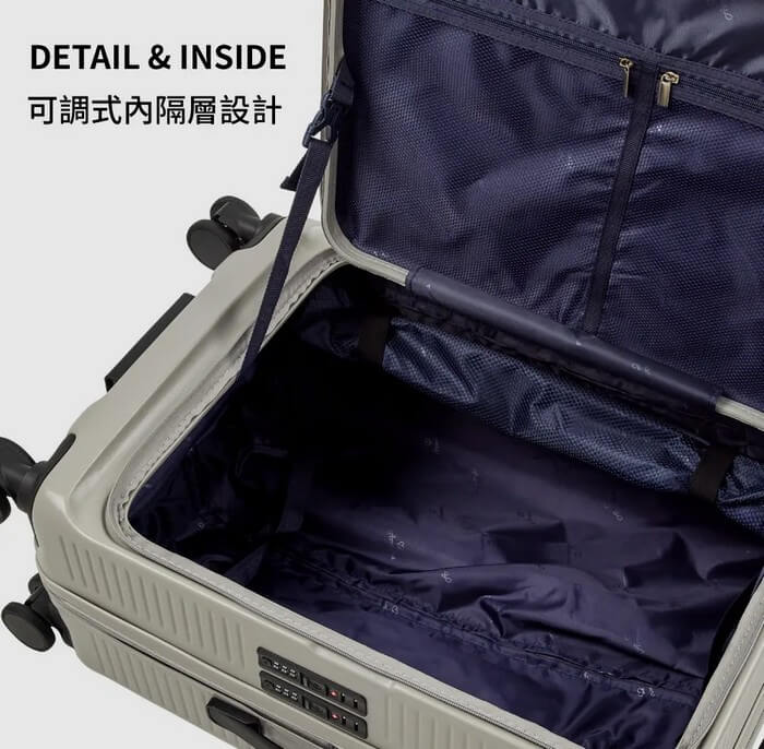 PC硬殼輕量化材質,箱身強韌耐刮耐摔,使用輕巧不費力。