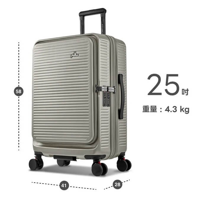 - 主商品密度/重量/硬度:行李箱重量:29吋-5.3Kg、25吋-4.3Kg 載重:29吋-13Kg/25吋-9Kg