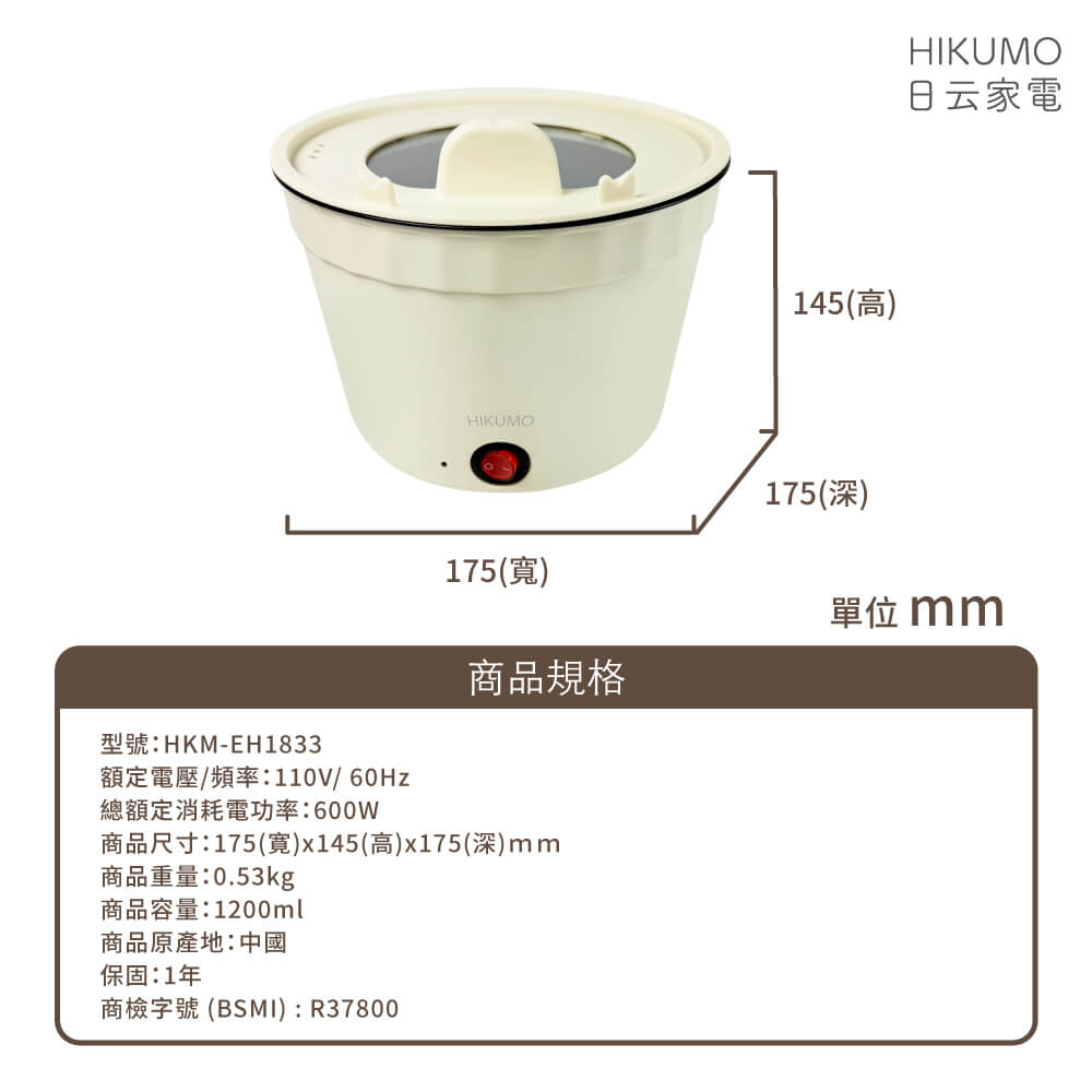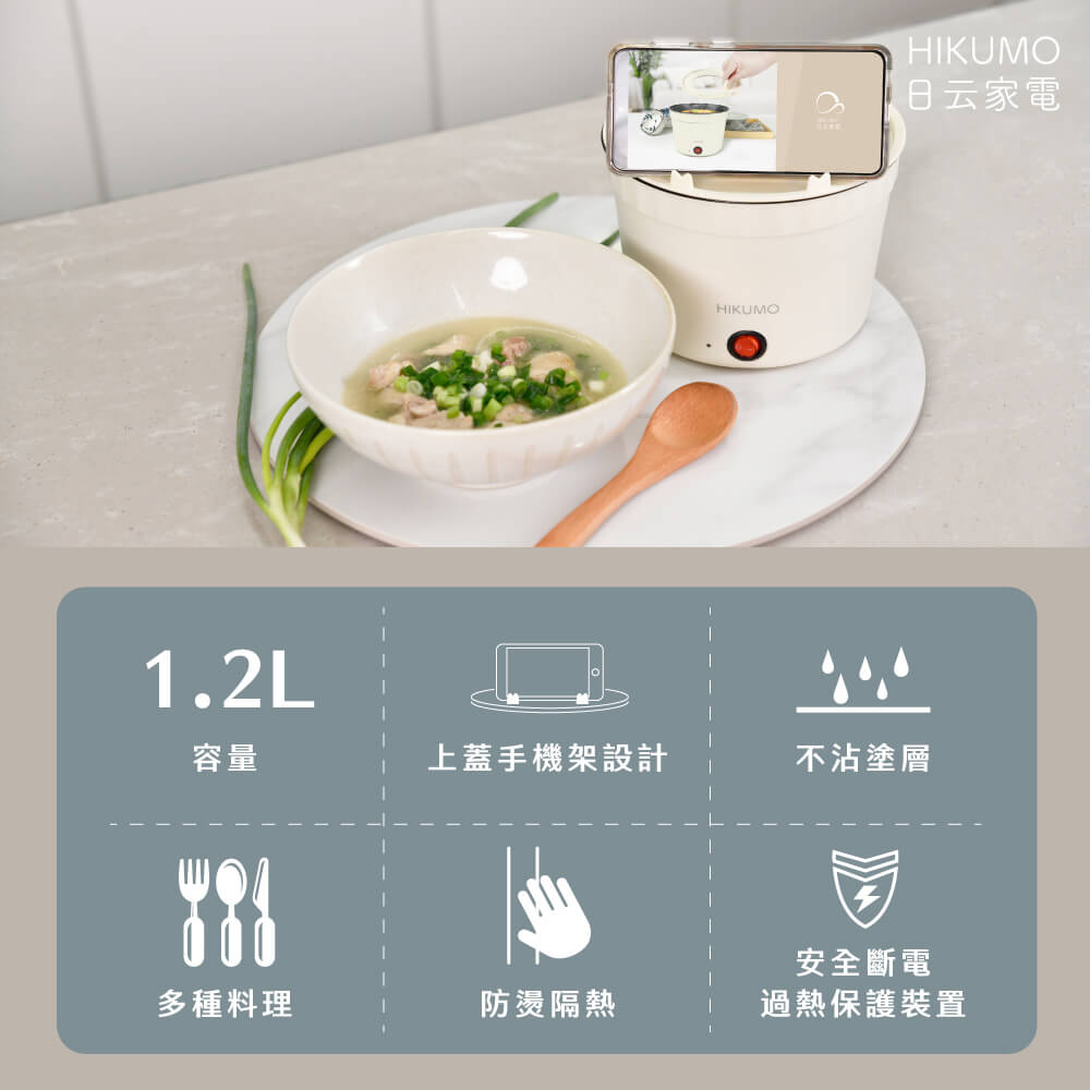 - 主商品:【HIKUMO日云】1.2L輕食泡麵鍋 /美食鍋HKM-EH1833 (上蓋,可當手機支架)