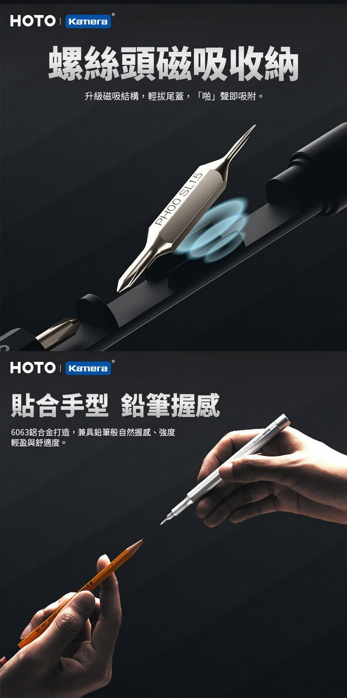 螺絲起子頭具備磁性,可牢固吸附螺絲。
