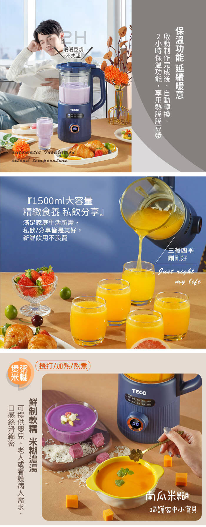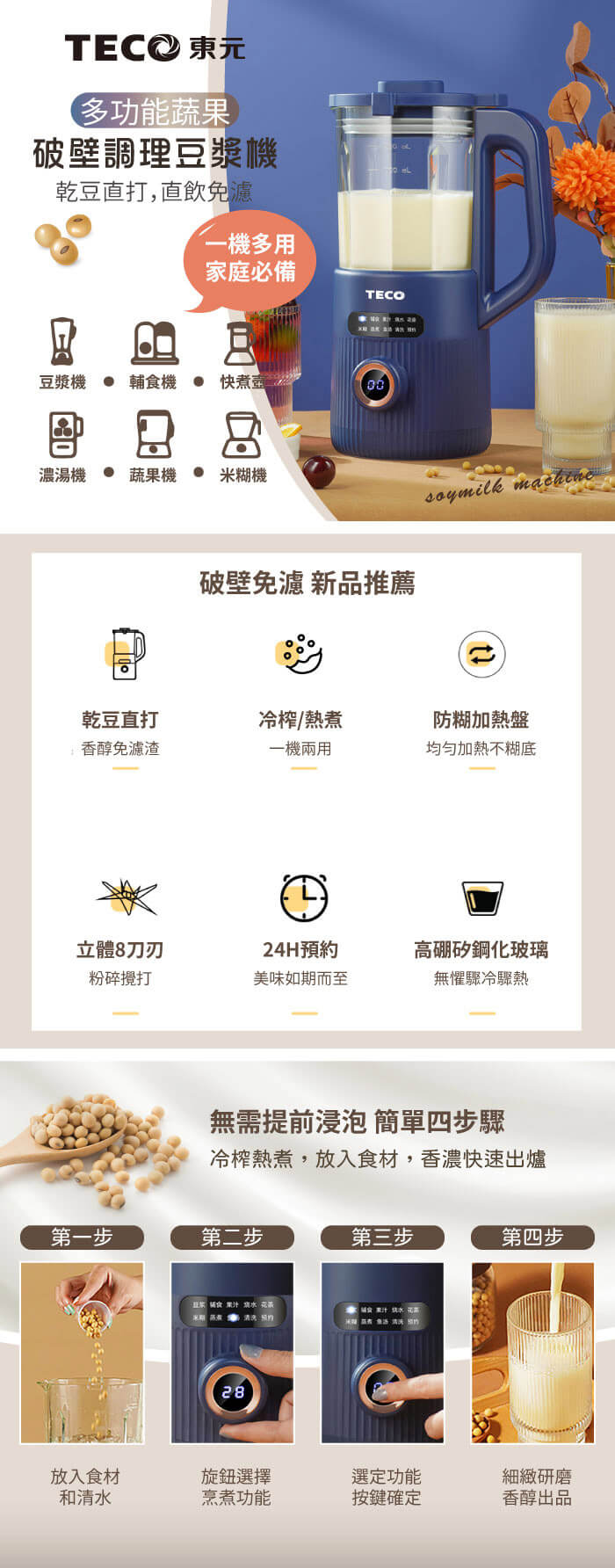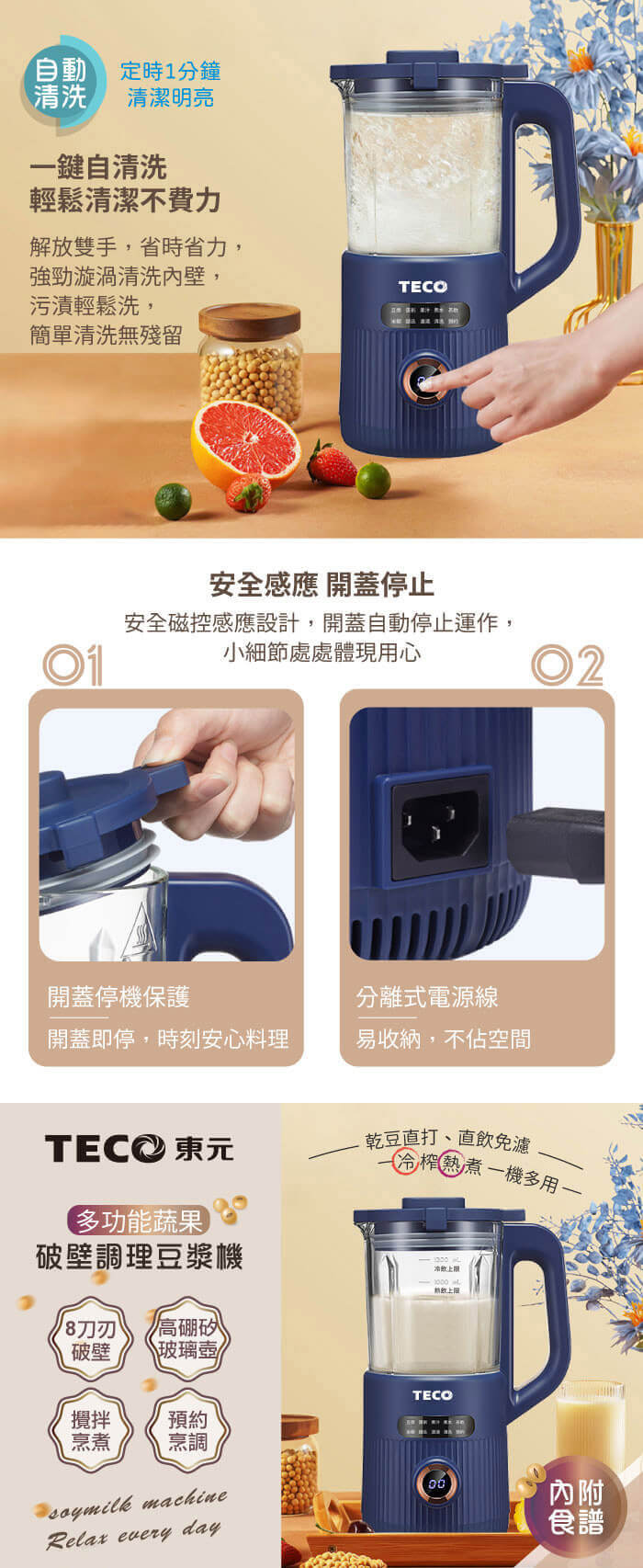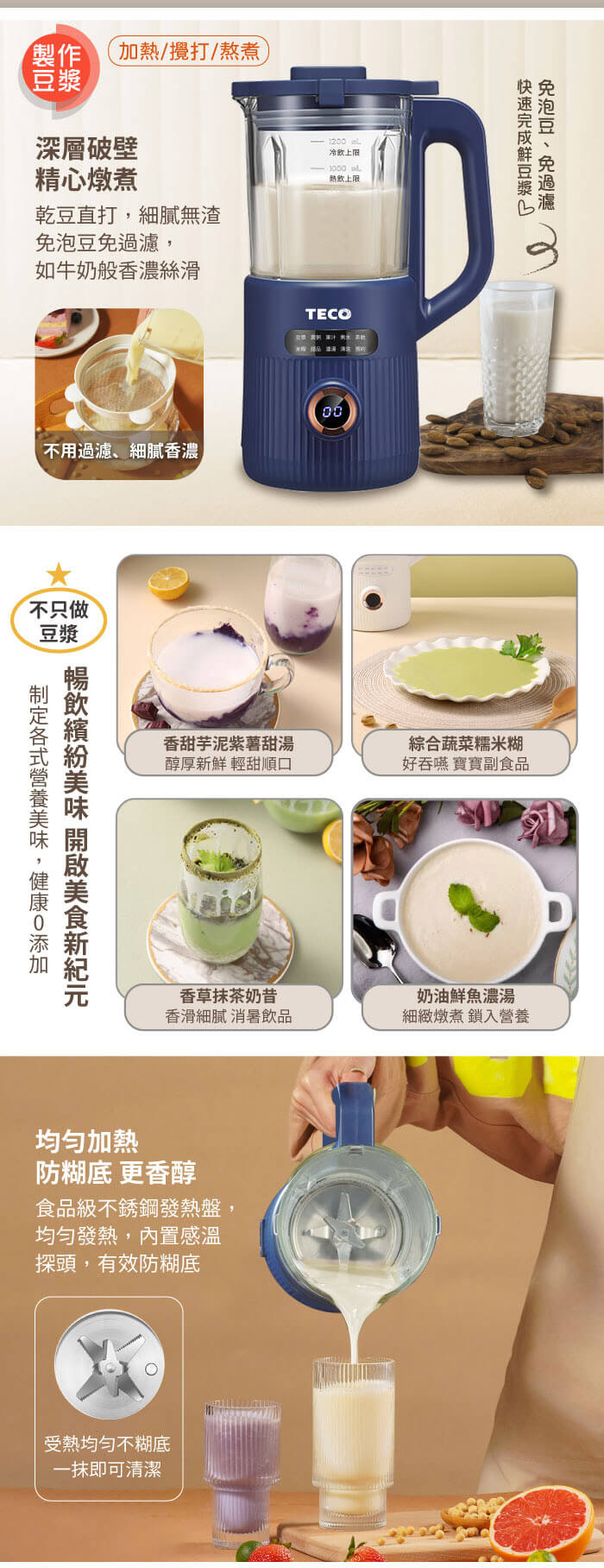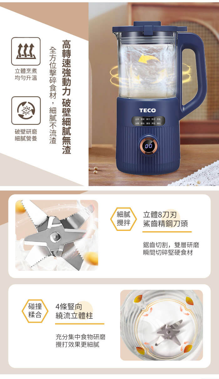 - 主商品:【TECO東元】多功能蔬果破壁冷熱調理豆漿機/破壁機/果汁機/快煮壺/輔食機(XYFYS007B)