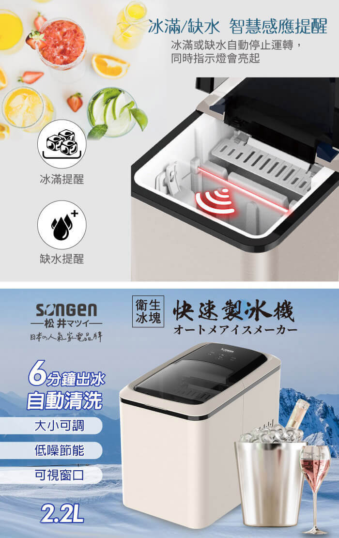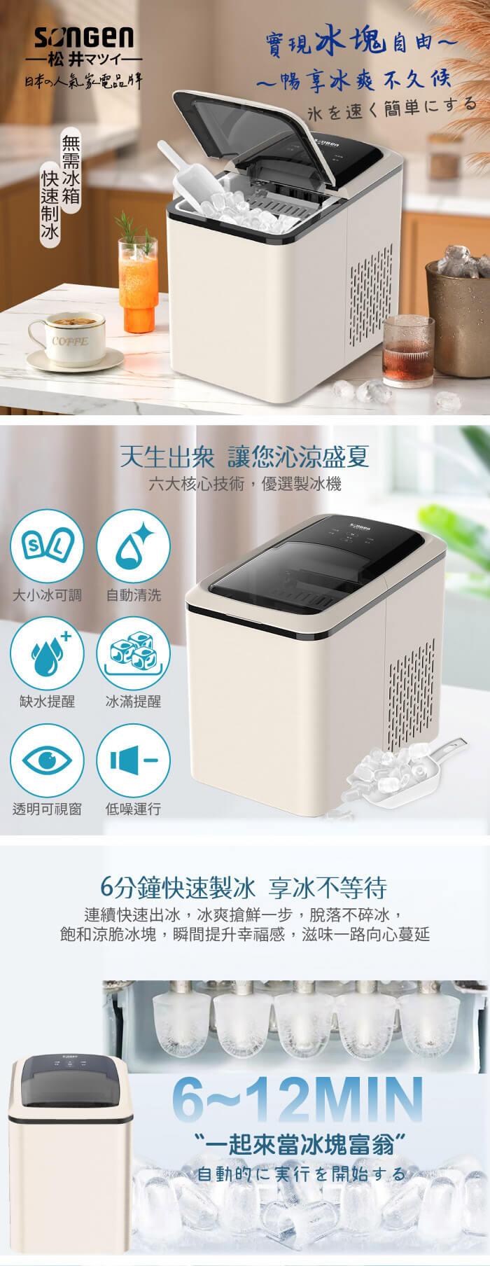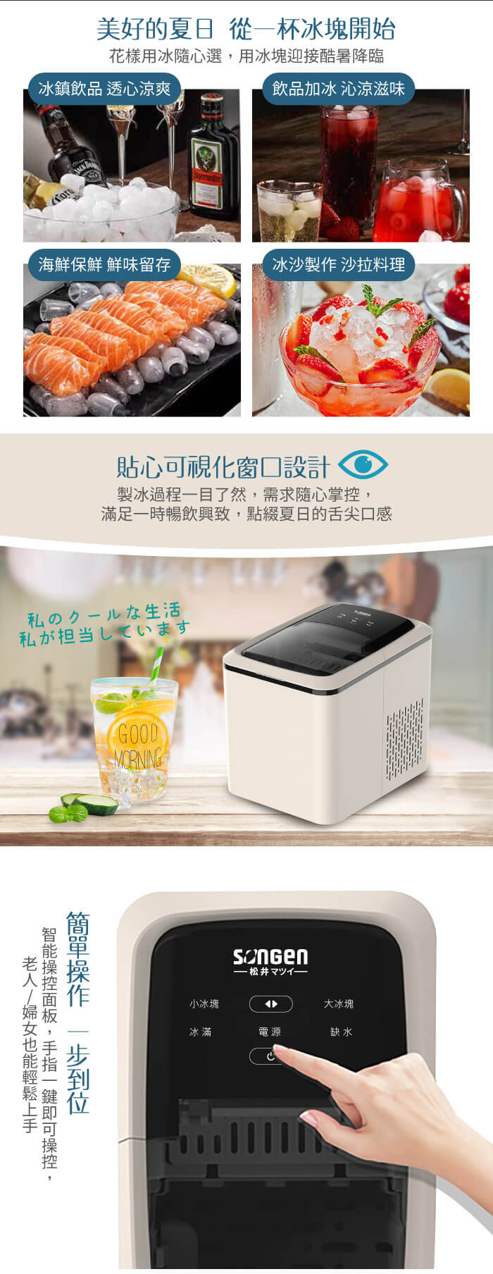 - 主商品:【SONGEN松井】日系衛生冰塊快速自動製冰機(SG-IC07E)