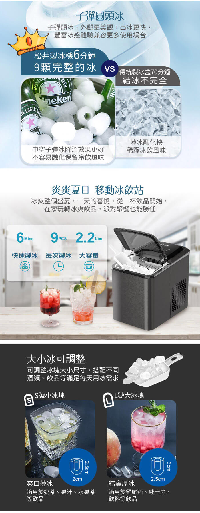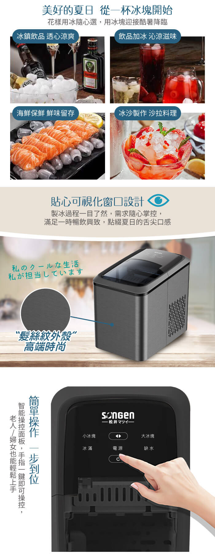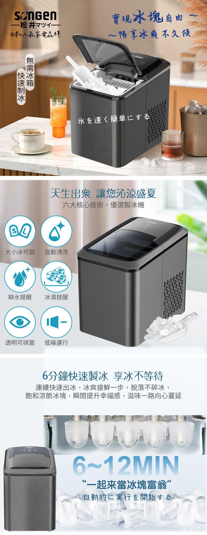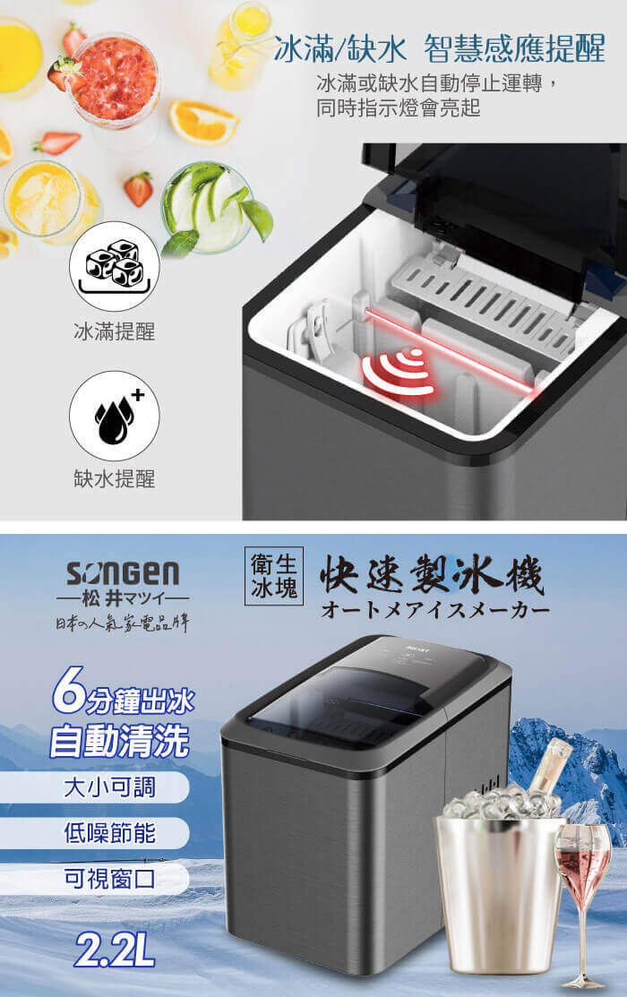 - 主商品:【SONGEN松井】日系衛生冰塊快速自動製冰機(SG-IC06E)