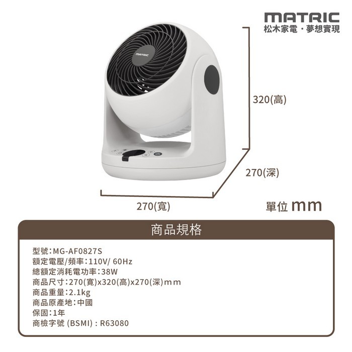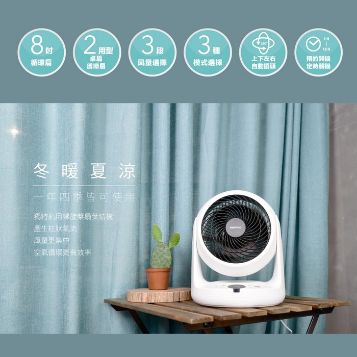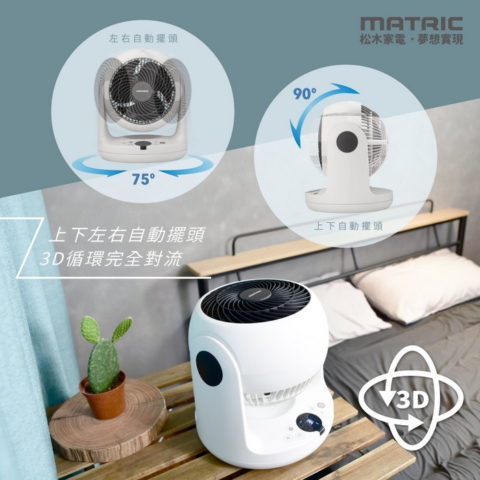 - 主商品:【MATRIC 松木】8吋立體擺頭循環扇MG-AF0827S (3D自動擺頭)
