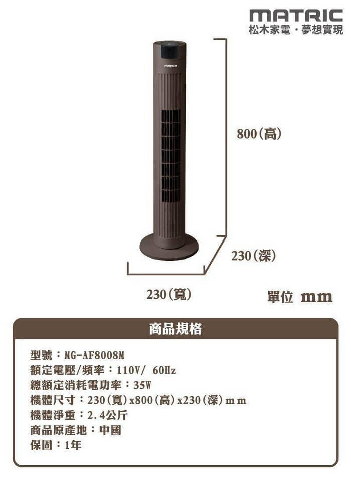 - 主商品:【MATRIC 松木】舒適風微電腦涼廈扇MG-AF8008M