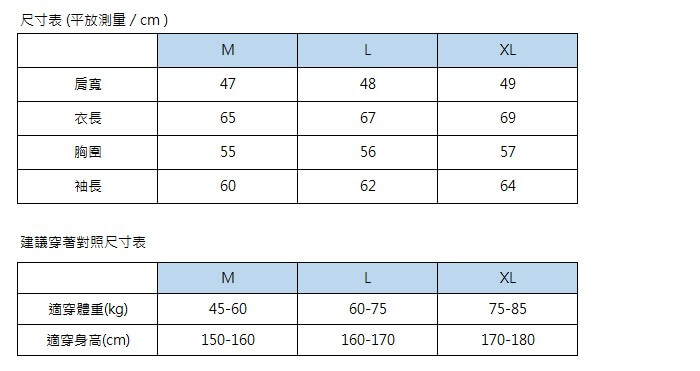 - 主商品尺寸/規格/重量:M/L/XL