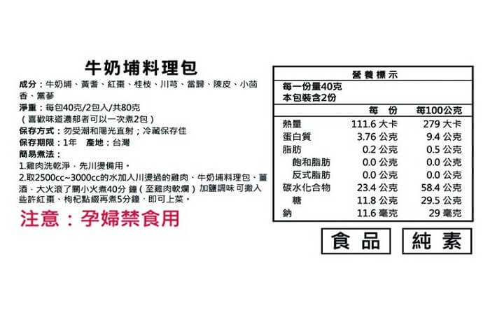 - 材質/食材:成分:牛奶埔、紅棗、黃耆、桂枝、川芎、當歸、陳皮、小茴香、黨蔘