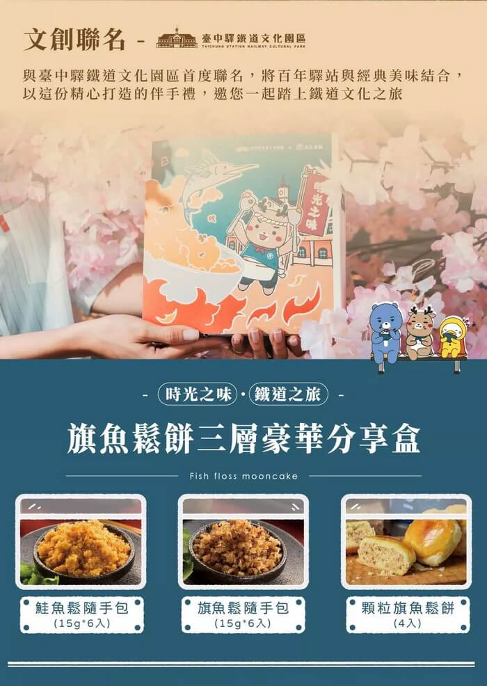 金黃旗魚鬆餅4入 / 旗魚鬆隨手包15gx6包 / 鮭魚酥隨手包15gx6包。