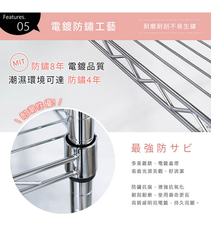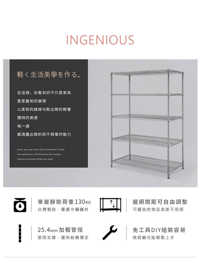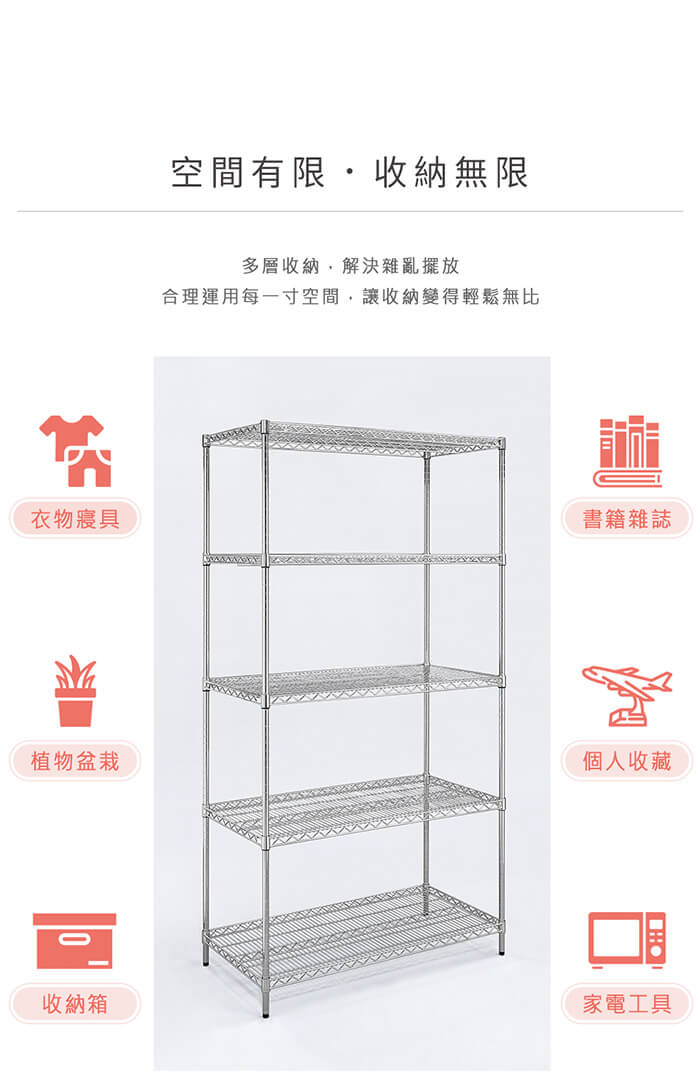 - 主商品:【AAA】MIT重型五層電鍍波浪架 120x45x150cm - 鉻色