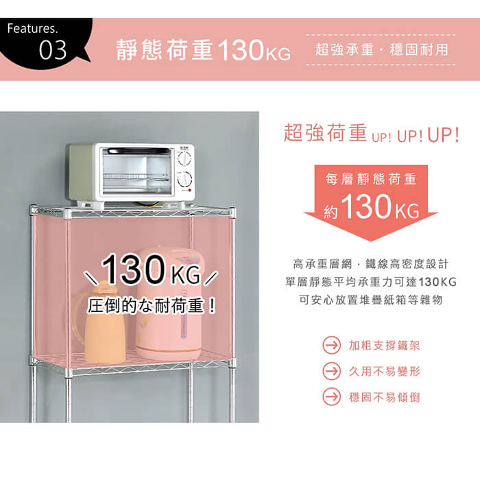 單層靜態平均荷重可達130kg。
