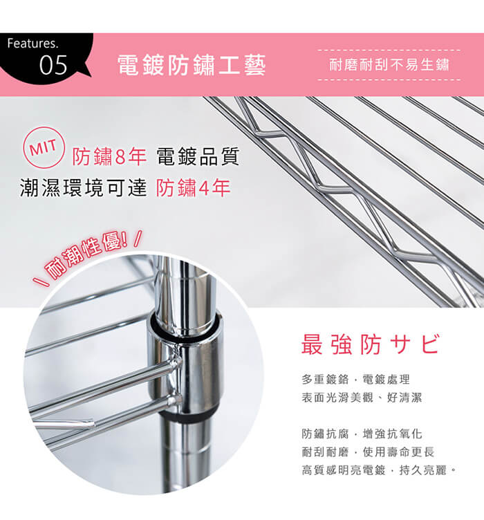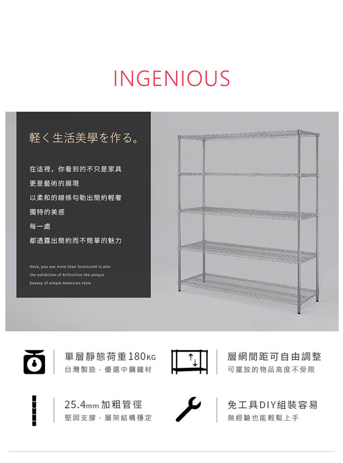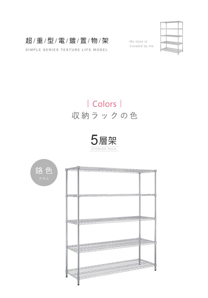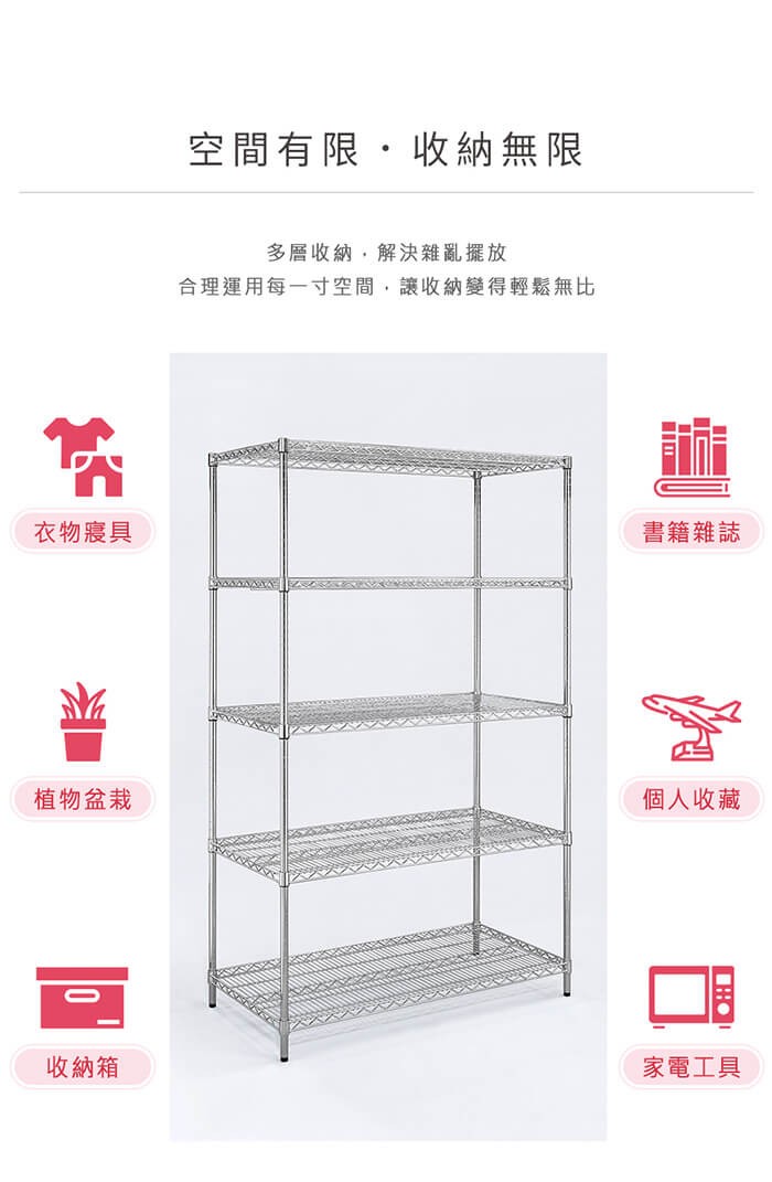 - 主商品:【AAA】MIT超重型五層電鍍波浪架 120x45x180cm - 鉻色