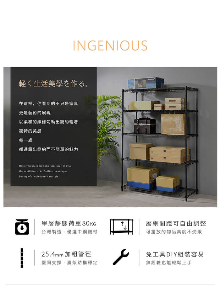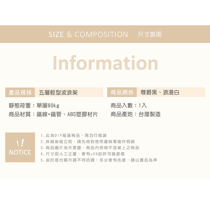 - 主商品:【AAA】MIT輕型五層烤漆波浪架 120x45x180cm - 2色可選