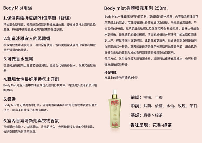 身體增添香氣,同時保持肌膚濕潤。