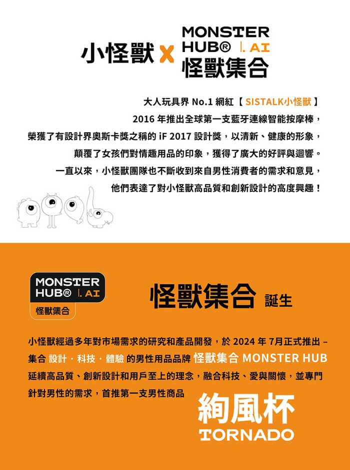 - 主商品:SISTALK 怪獸集合 創新AI智能絢風杯(活力橙)*1