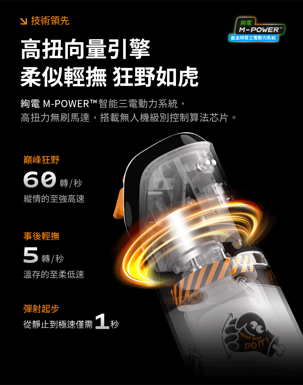 高扭向量引擎、一秒瞬達,360°顆粒 / 渦輪內膽通道。