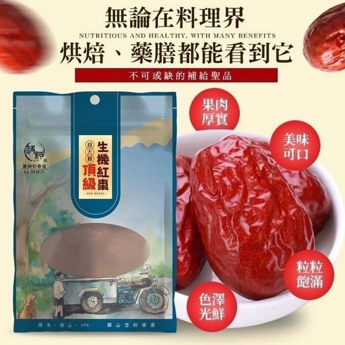 - 主商品:【麗紳和春堂】超大顆頂級生機紅棗(250g/包)x4包