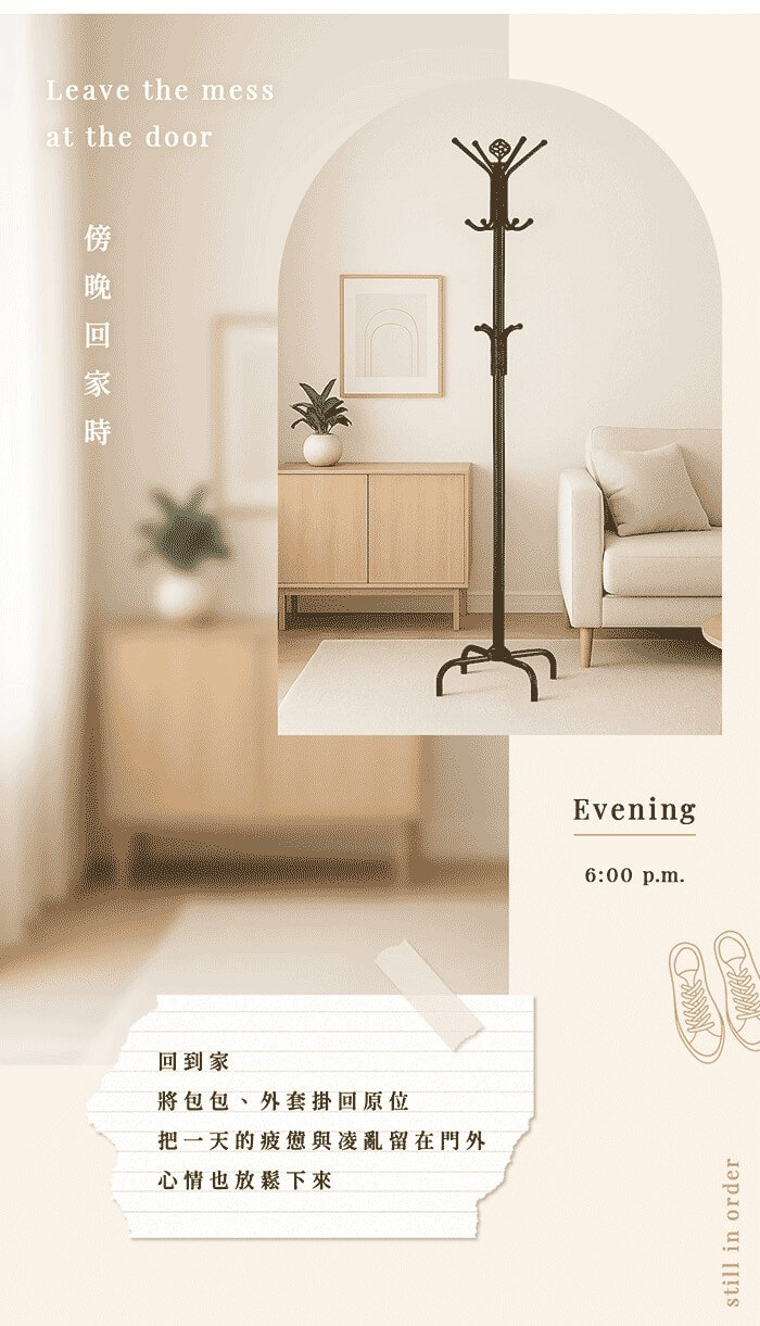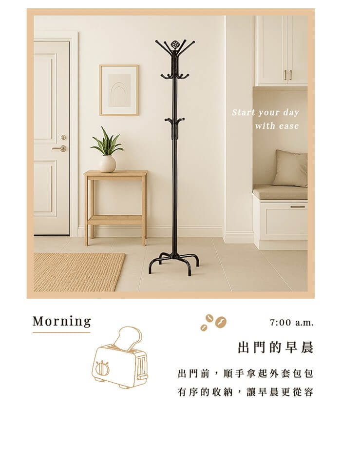 - 主商品:【AAA】MIT鐵曜立桿衣帽架