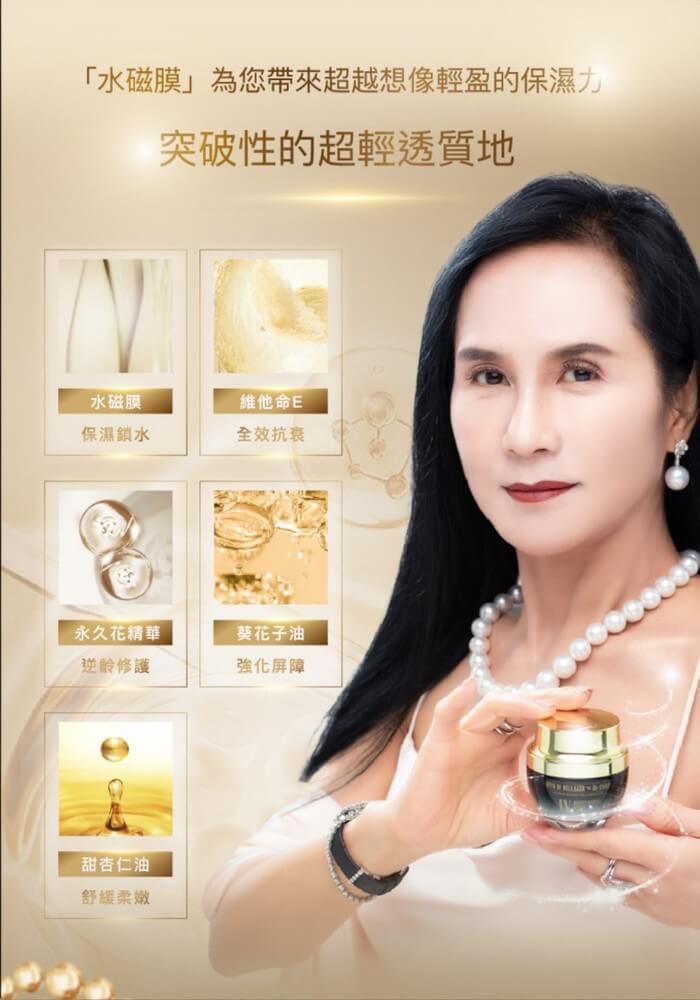 - 材質/食材:葵花油、甜杏仁油、乳酸菌溶胞產物、角鯊烷、維他命E水果酯、核心糖杏仁、永久花精油、玻尿酸交聯蛋白(水膜磁)(詳情配方請參閱盒身標準)