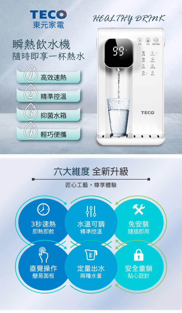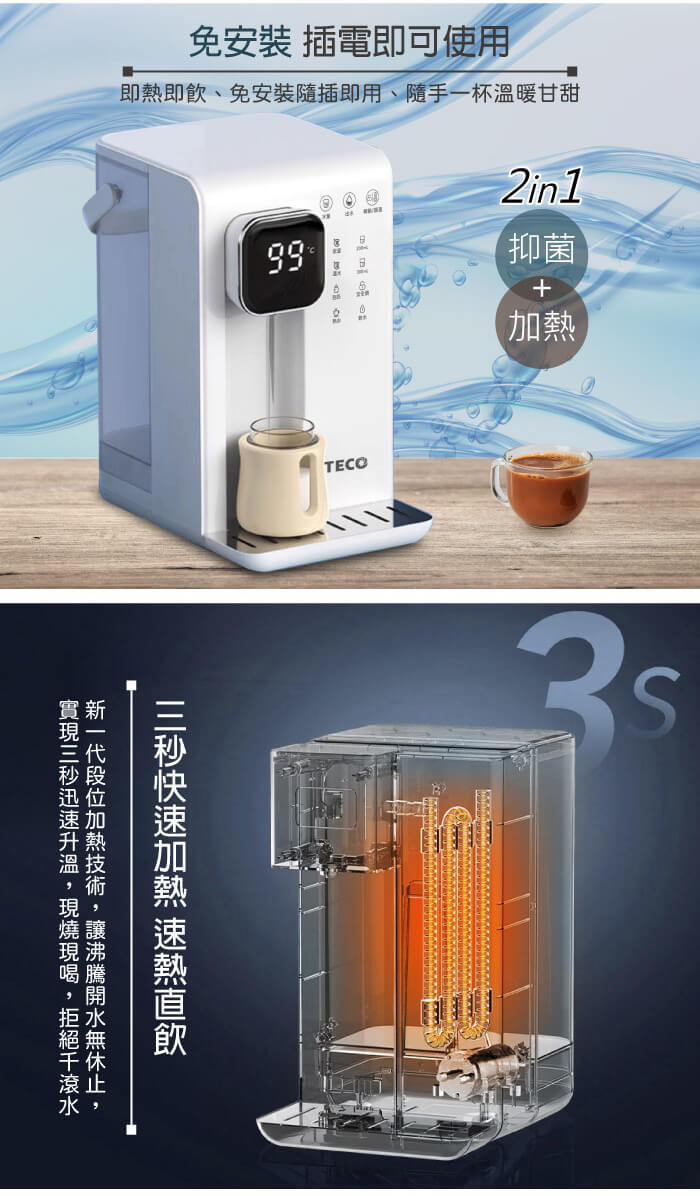 - 主商品:【TECO東元】智能瞬熱式飲水機/開飲機/飲水機(XYFYD0301B)