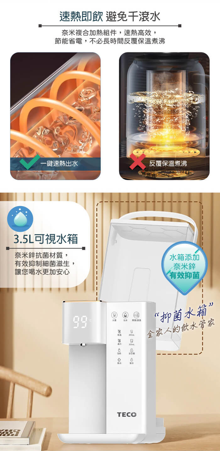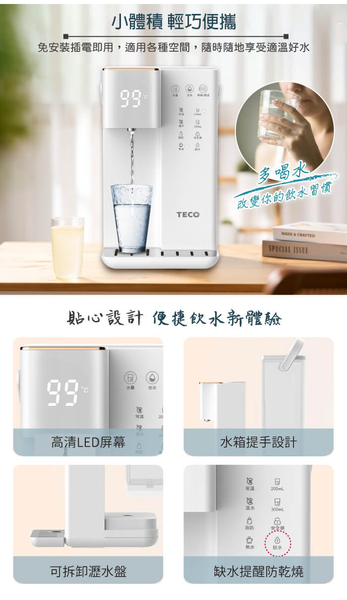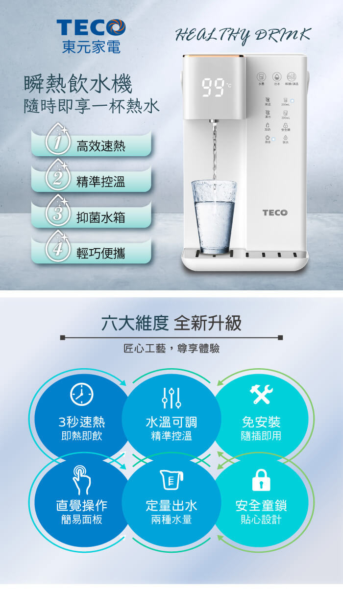 - 主商品:【TECO東元】智能瞬熱式飲水機/開飲機/飲水機(XYFYD0301W)