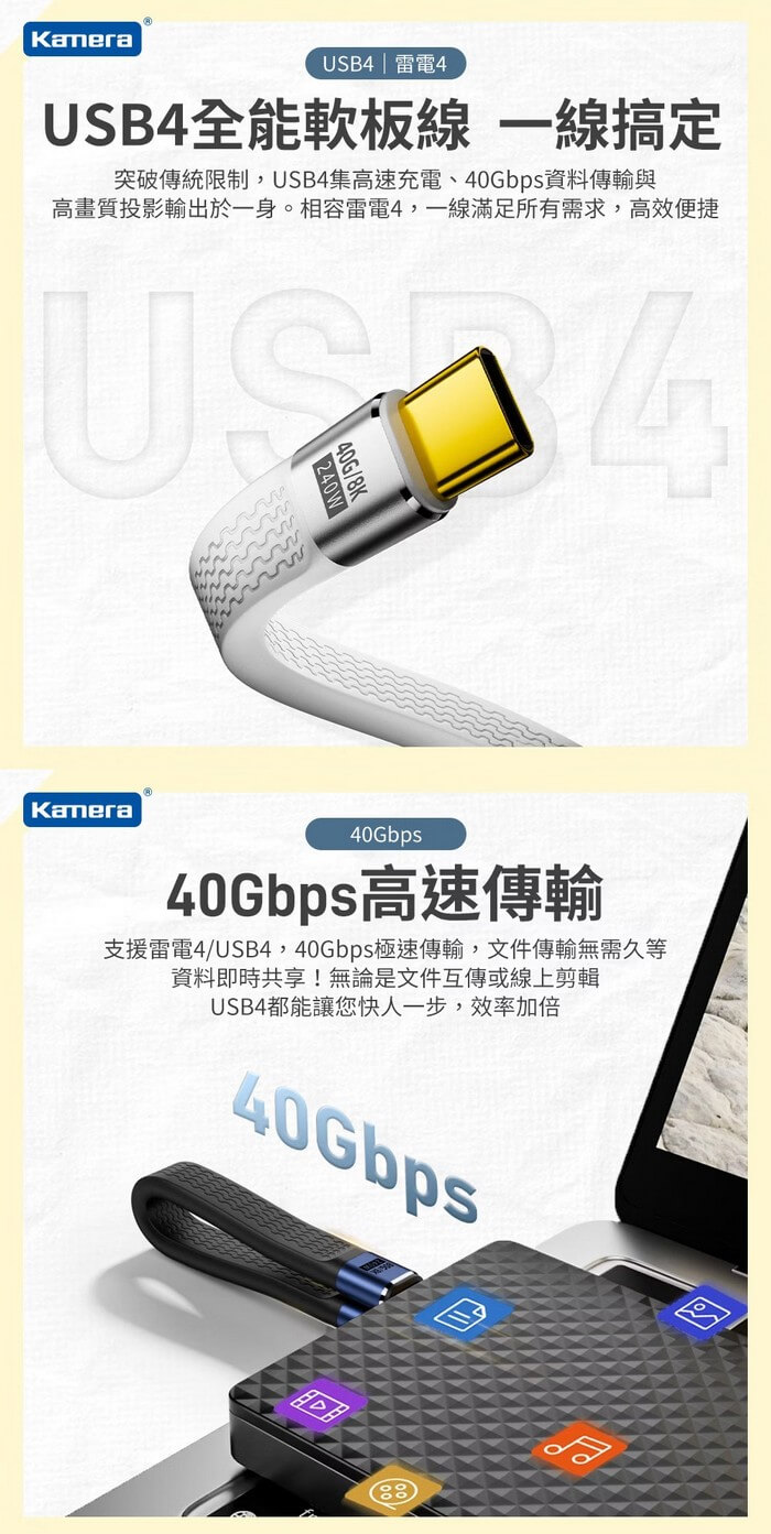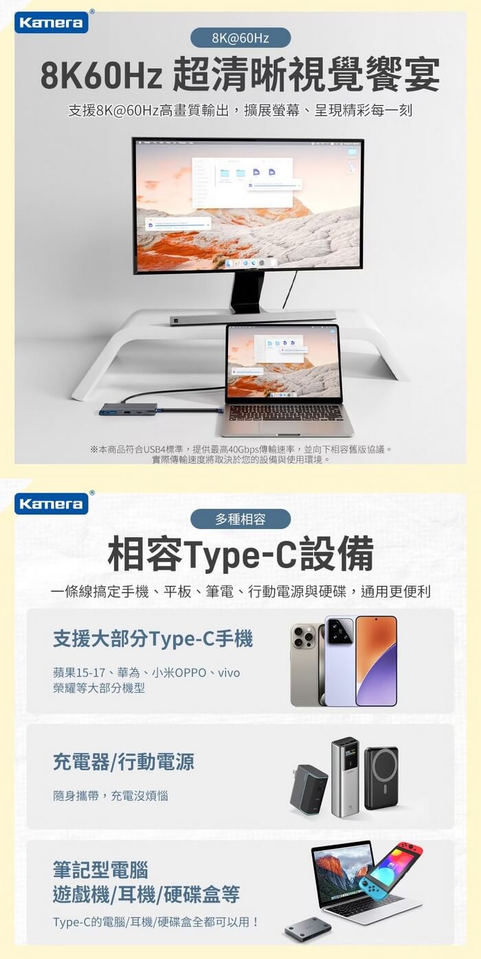 USB4 Gen3x2 高速傳輸,8K@60Hz 影音傳輸能力。