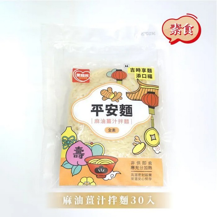 - 主商品:【陸仕麵館】愛麵族|平安祈福熟拌麵-麻油薑汁 30入/箱 (素食)