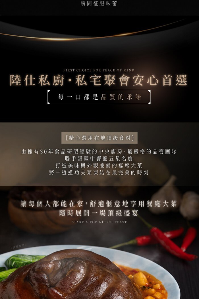 - 主商品:【陸仕麵館】韻藏中餐廳|漁香扣元蹄 1630g
