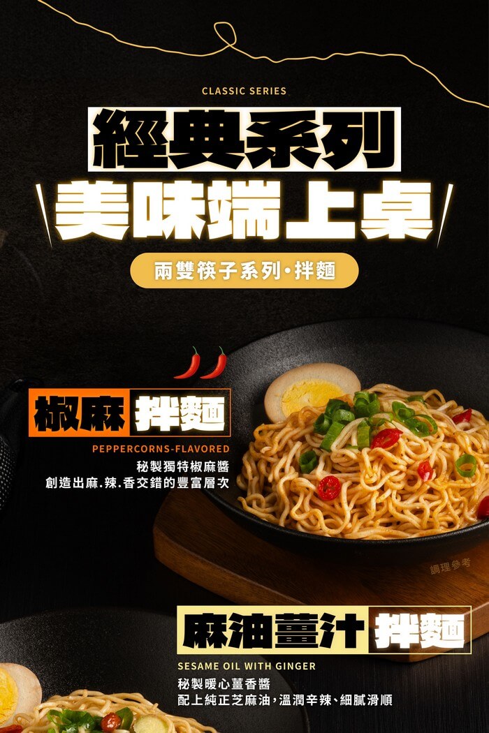 - 主商品:【陸仕麵館】兩雙筷子|素食麻油薑汁乾拌麵 (4入)*3袋組