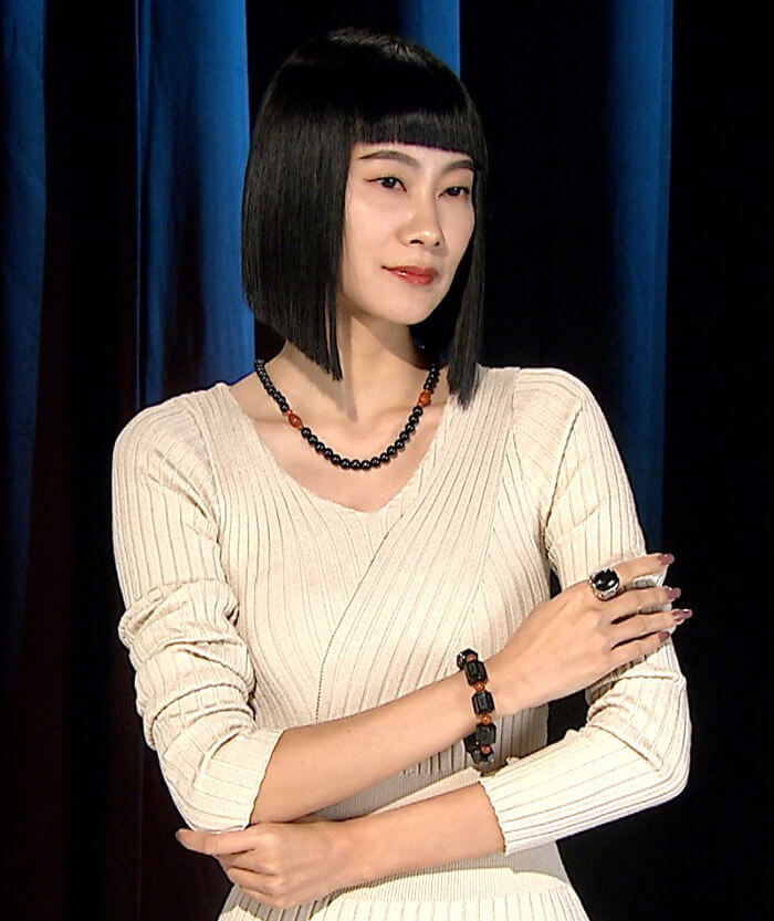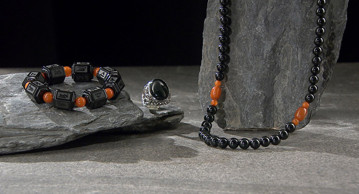 色澤深邃如墨、通透隱綠,質地細潤溫潤。