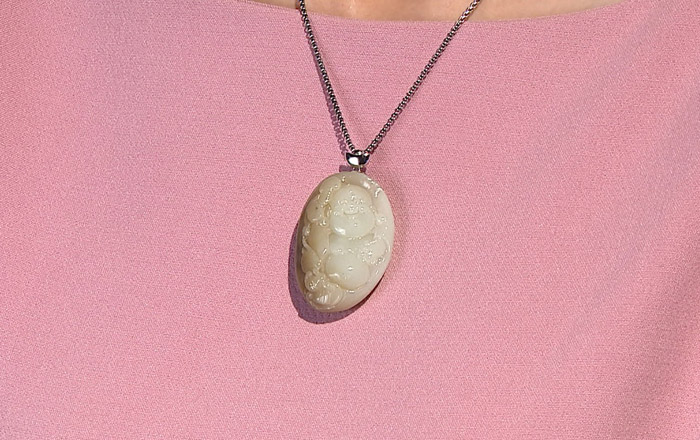 白玉細膩溫潤,糖色自然暈染,形成白與黃的和諧對比。