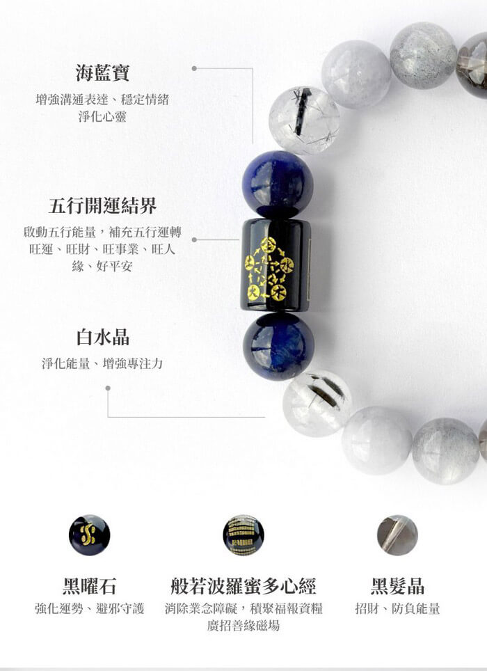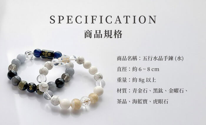 - 主商品:五行水晶手鍊 (水)x1