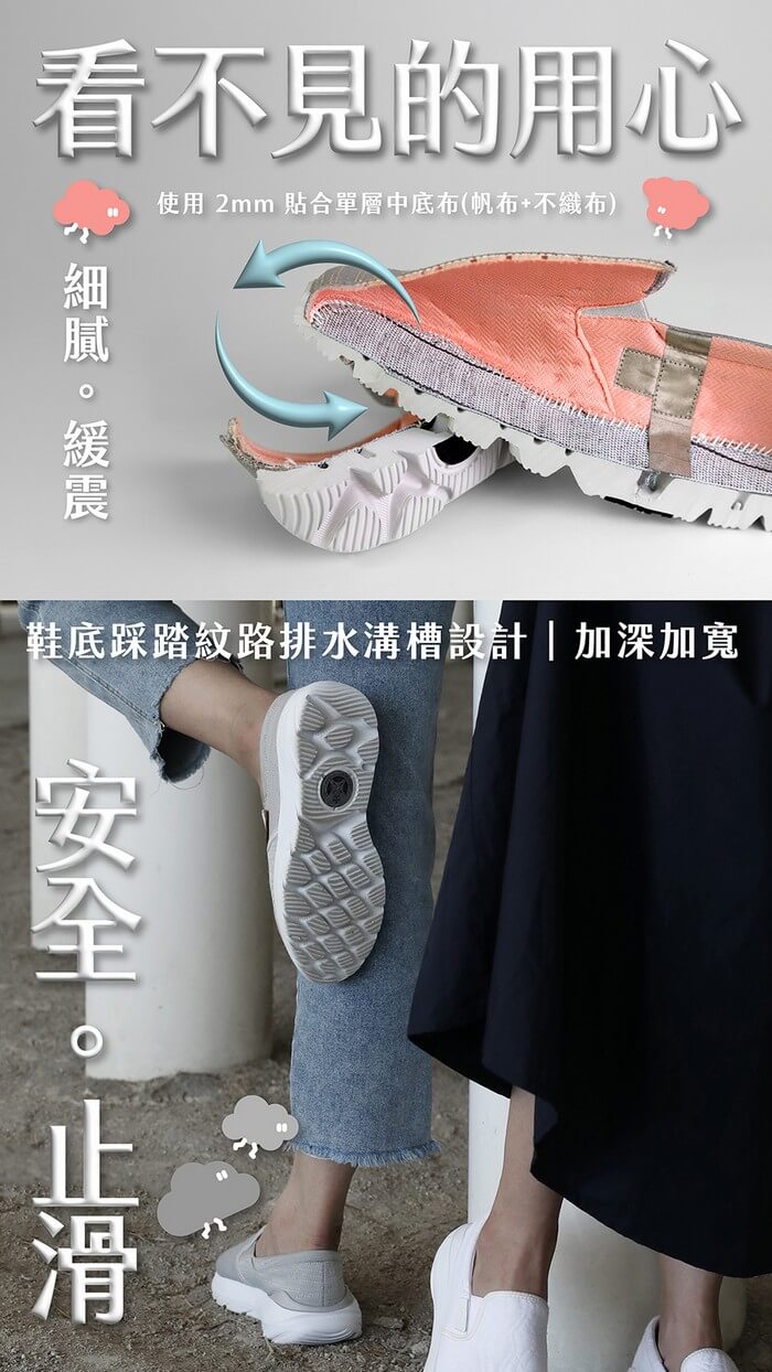 寬楦不擠腳,鬆緊帶設計,符合各腳型。