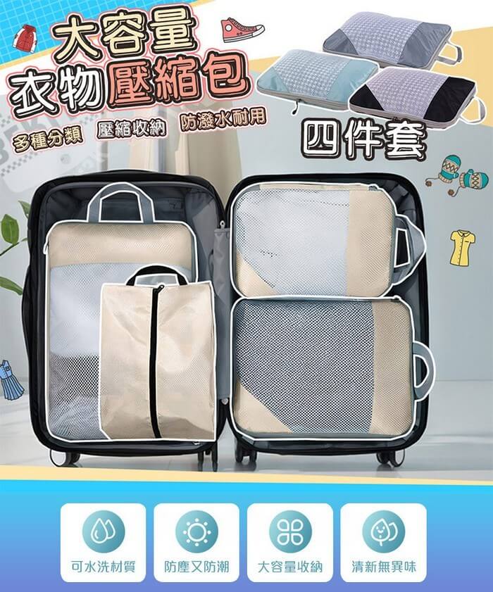 - 主商品:【QiMart】韓式升級質感加厚衣物4件組大容量壓縮袋(F款)x2組