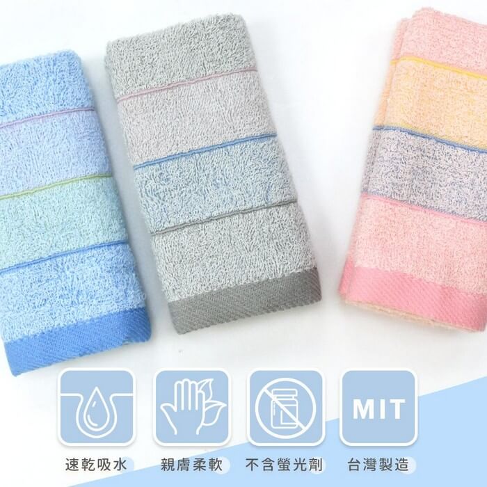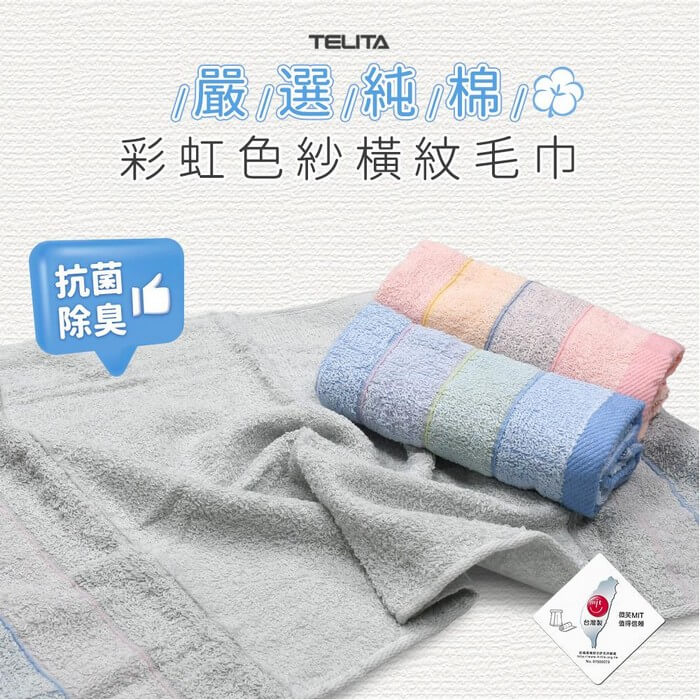 【TELITA】台灣製 彩虹色紗橫紋毛巾_12條組