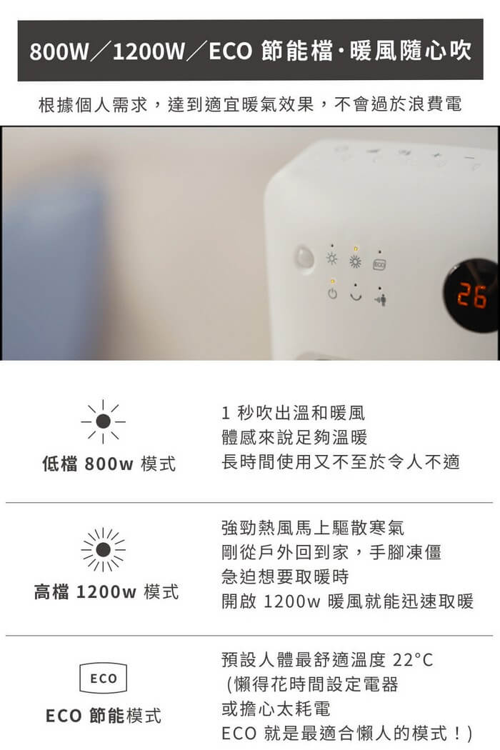 PTC陶瓷發熱|高檔1200W/低檔800W。