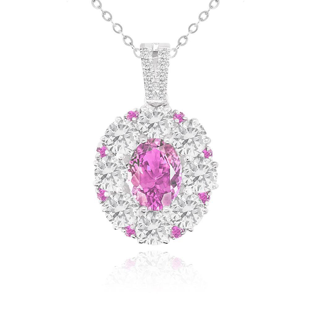 - 贈品尺寸/規格/重量:墜台:925銀 寶石種類:粉紅剛玉 主鑽形狀:橢圓形 主鑽重量:1.00克拉(含)以上 925鍊長:16吋及18吋【可調節】 重量:0.8g(含)以上(已鑲件)