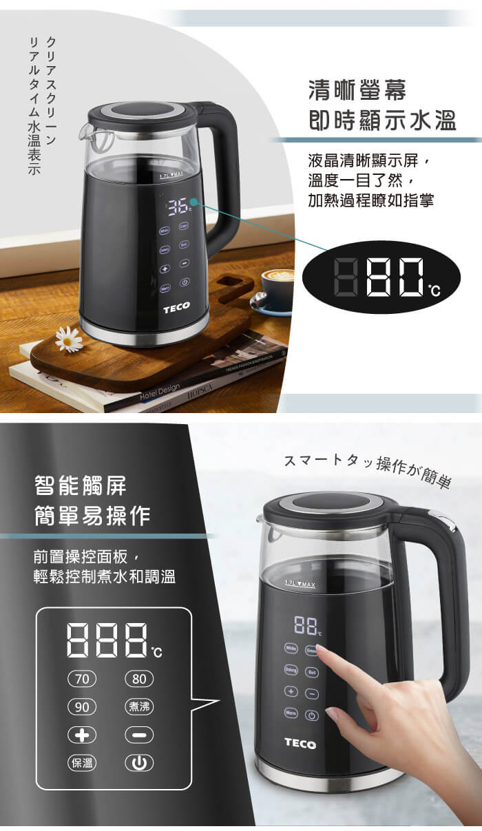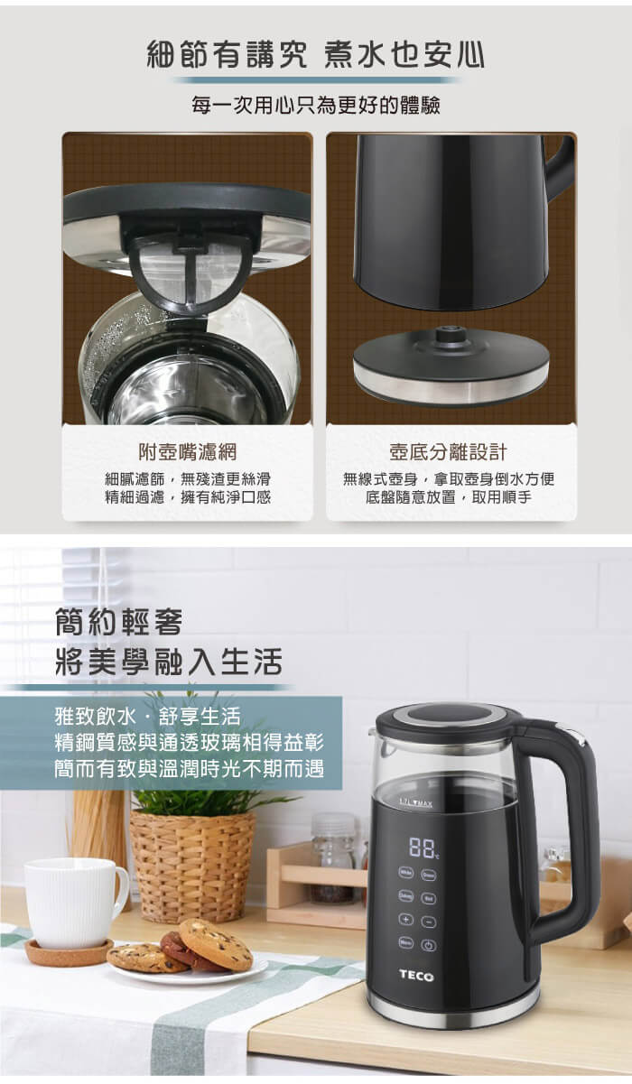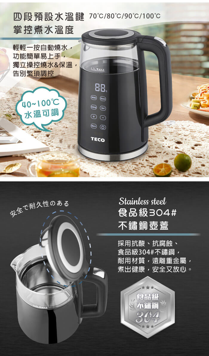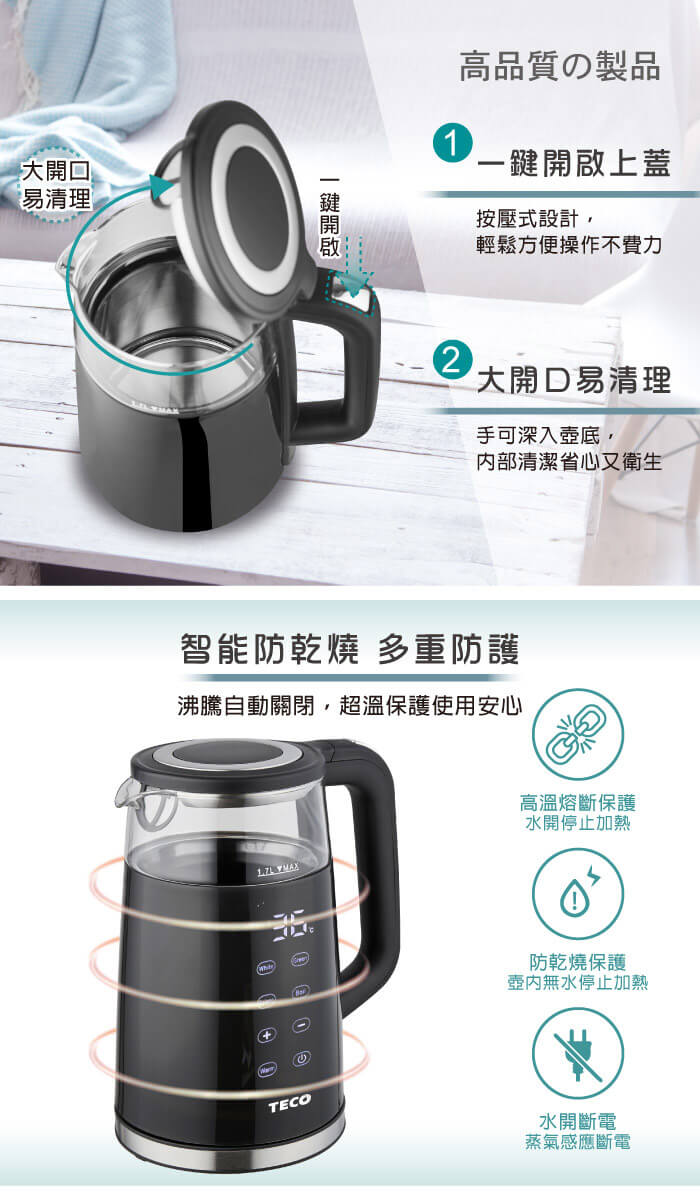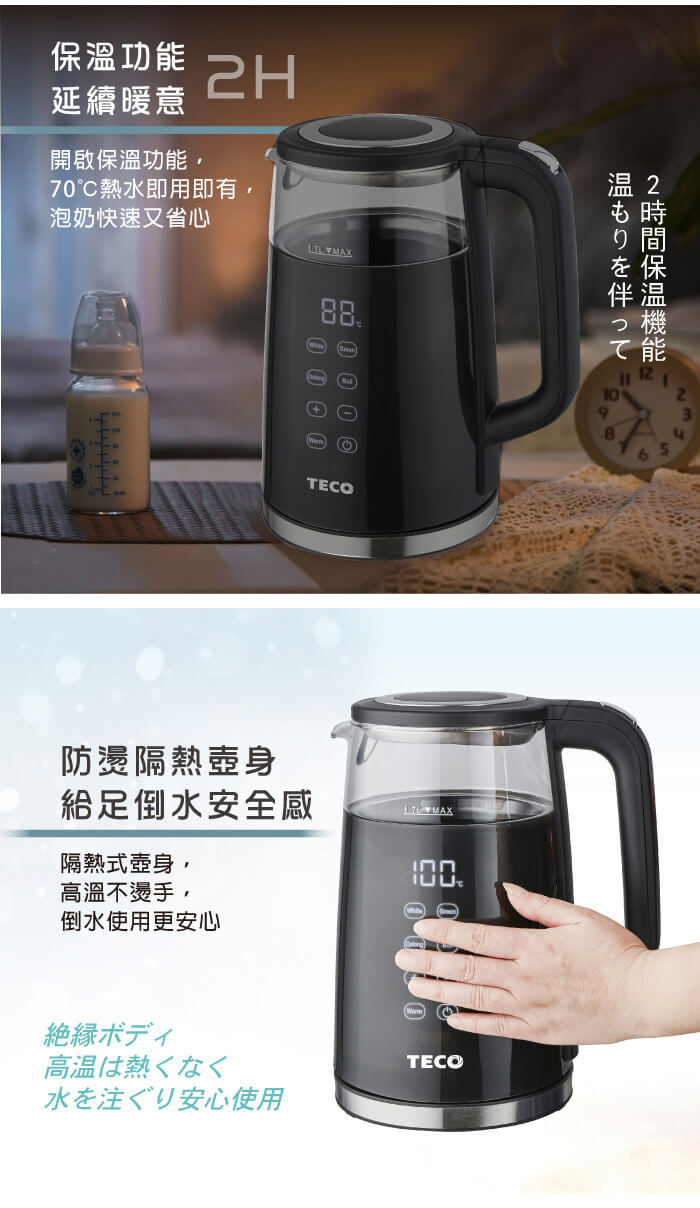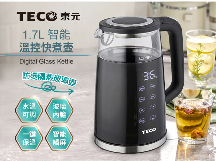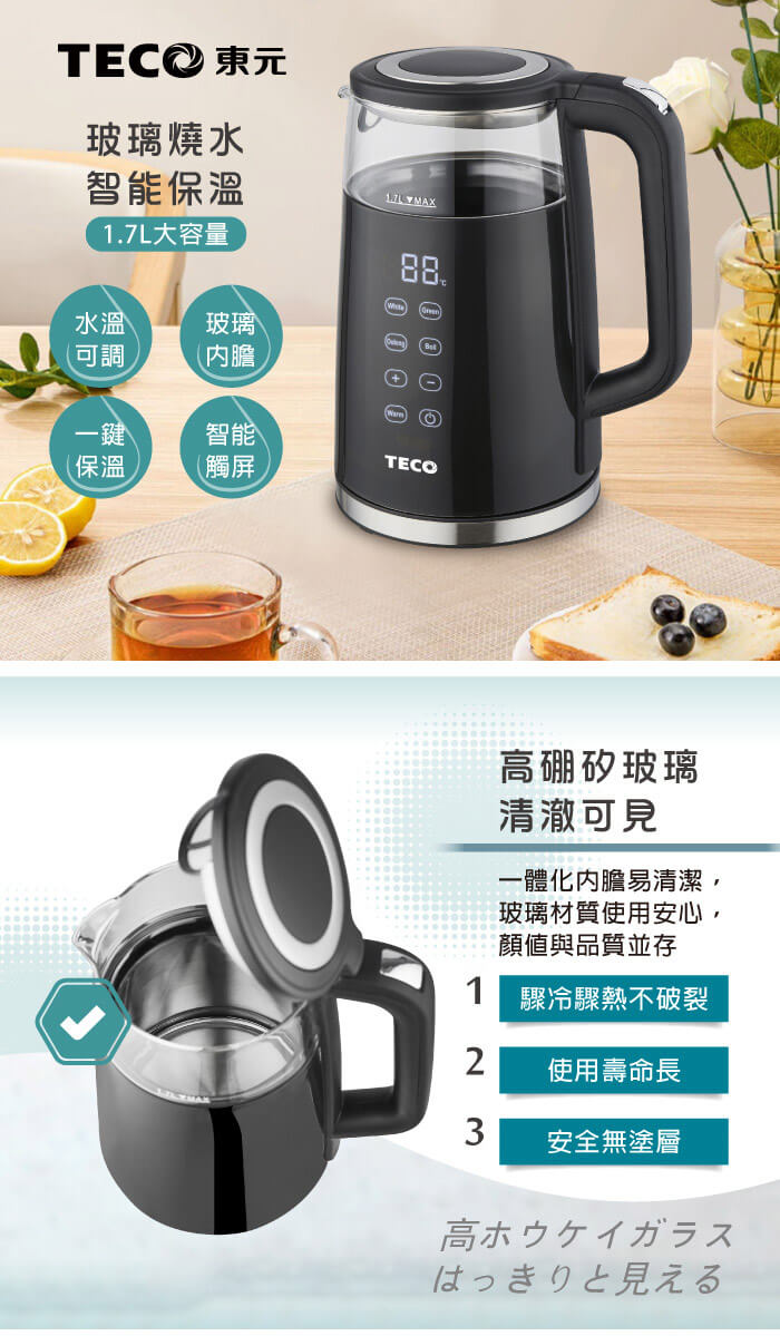 - 主商品:【TECO 東元】智能溫控玻璃電熱快煮壺/電水壺(XYFYK1704B-B)