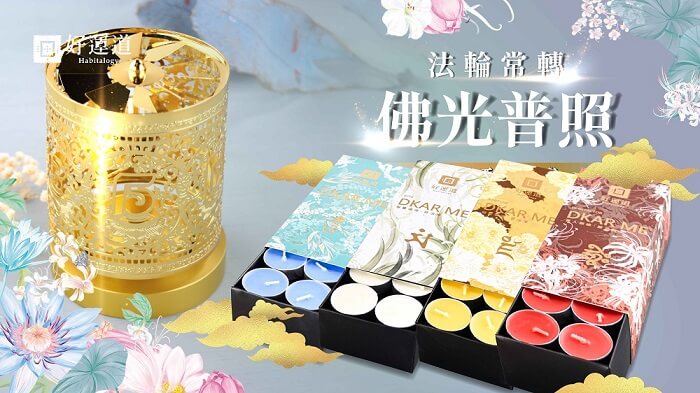 - 贈品:十字金剛杵轉經輪(含:插銷*1、燭台*1、底座*1)*1、酥油蠟燭(30入/盒)*4盒、中標*1