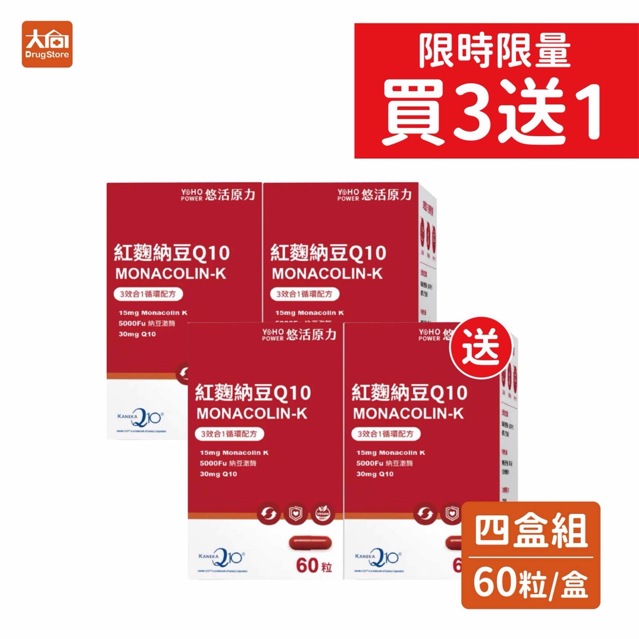 - 主商品:【悠活原力】紅麴納豆Q10膠囊 60粒x4盒