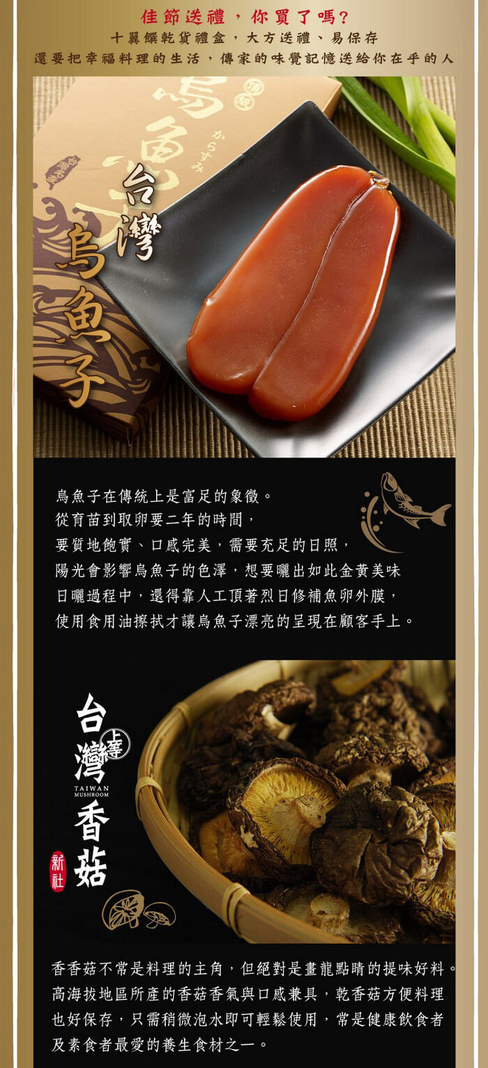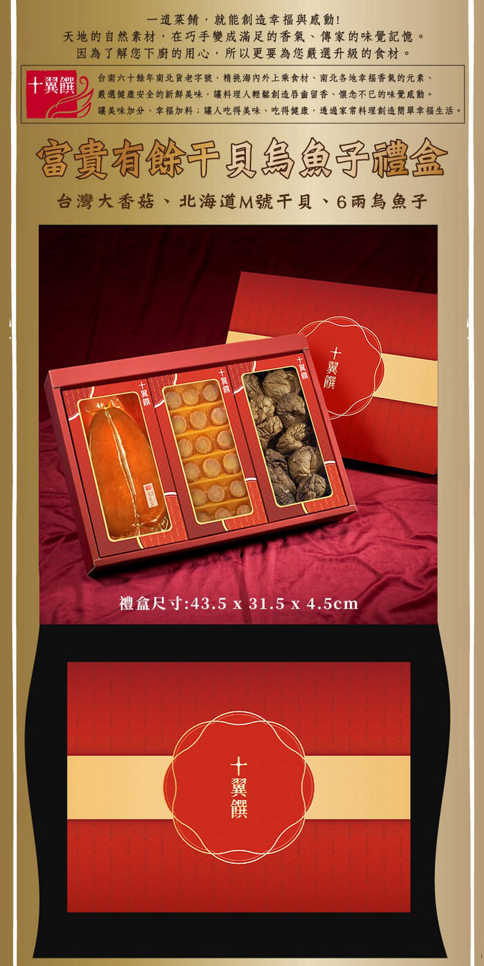 - 主商品:【十翼饌】富貴有餘干貝烏魚子禮盒 (附提袋)