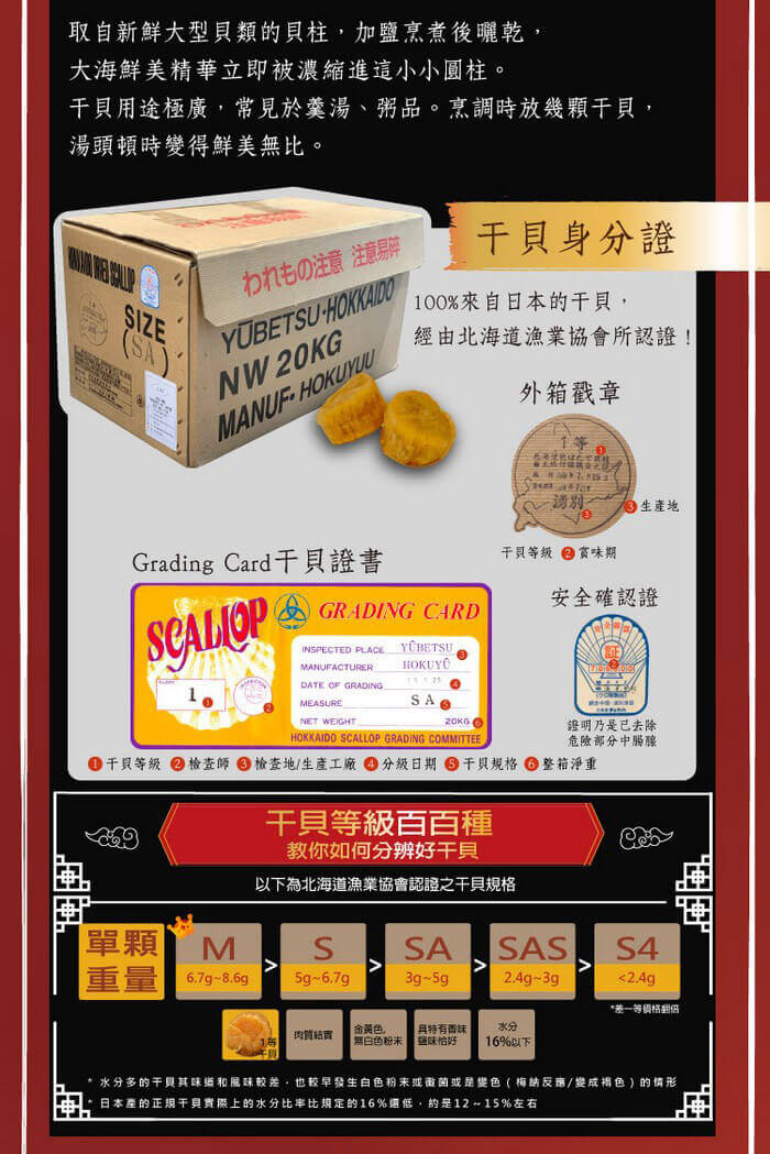 - 主商品尺寸/規格/重量:品名: 【十翼饌】豐收有餘烏魚子+干貝3層 內容物名稱:台灣6兩烏魚子、一口烏魚子100g、北海道SA干貝100g 原產地: 台灣、日本 保存期限:烏魚子:常溫7天 冷凍1年,一口烏魚子:常溫5天、冷藏6個月,干貝:1年 製造廠商或國內負責廠商名稱:美大雅有限公司 製造廠商或國內負責廠商電話:02-27270855 製造廠商或國內負責廠商地址:10491台北市中山區建國北路二段3巷15號9樓之1 投保產品責任險字號:南山產物保險22A0058919 食品業者登錄字號:D-197490088-00000-6