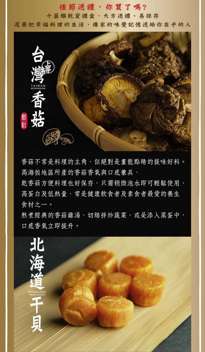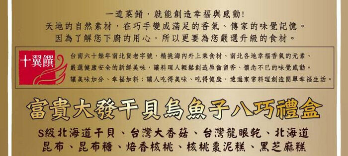 - 主商品:【十翼饌】富貴大發干貝香菇八巧禮盒(附提袋)