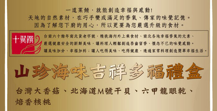 - 主商品:【十翼饌】山珍海味吉祥多福禮盒 (附提袋)