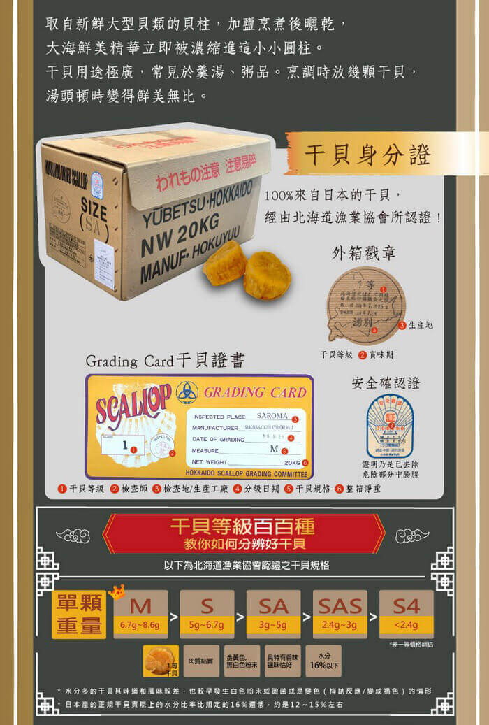 - 主商品尺寸/規格/重量:品名: 【十翼饌】山珍海味吉祥多福禮盒 內容物名稱:台灣大香菇 75g、北海道M號干貝 135g、焙香核桃110g、六甲龍眼乾80g(如遇缺貨換焙香杏仁) 原產地: 台灣、日本 保存期限:香菇、干貝:1年,焙香核桃、龍眼乾:6個月 製造廠商或國內負責廠商名稱:美大雅有限公司 製造廠商或國內負責廠商電話:02-27270855 製造廠商或國內負責廠商地址:10491台北市中山區建國北路二段3巷15號9樓之1 投保產品責任險字號:南山產物保險22A0058919 食品業者登錄字號:D-197490088-00000-6