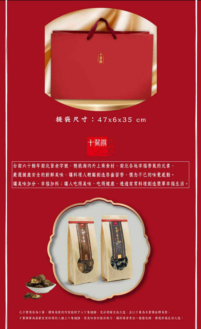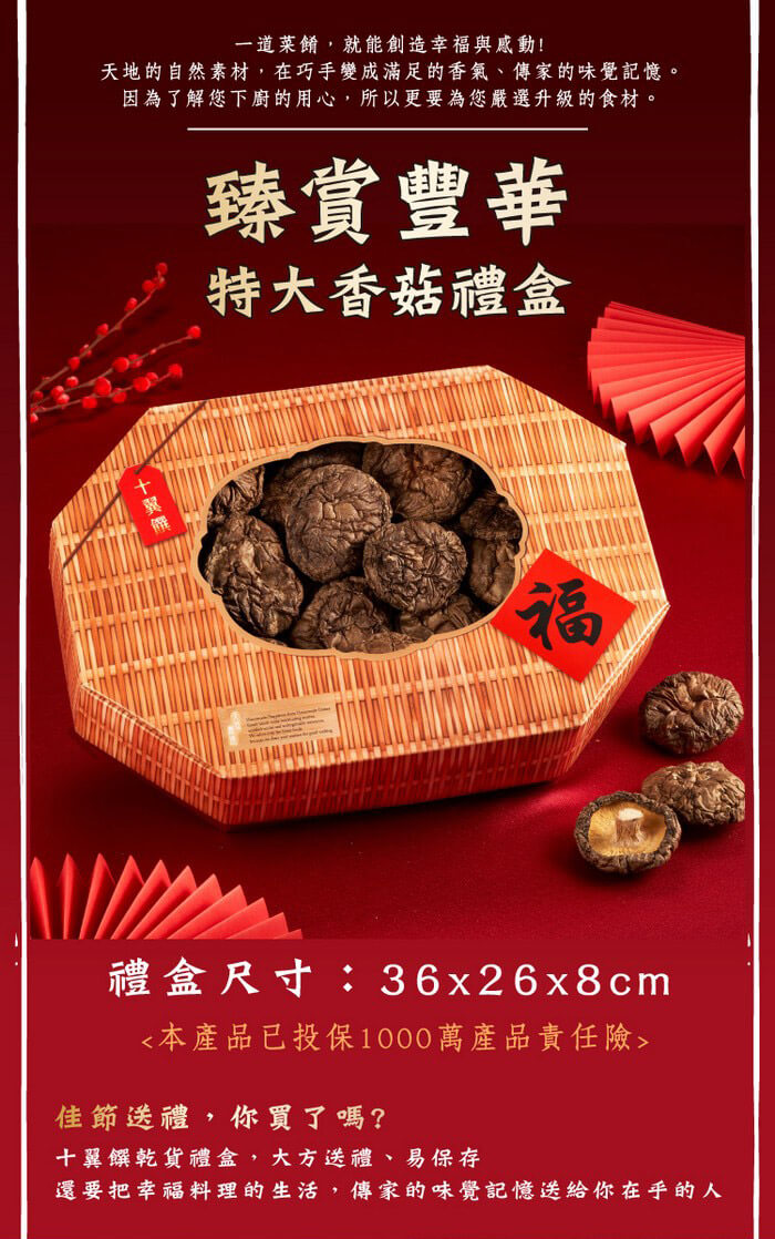 - 主商品:【十翼饌】臻賞豐華特大香菇禮盒