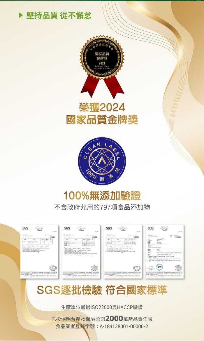 成分純淨:無蛋、無香料、無色素、無膠體。