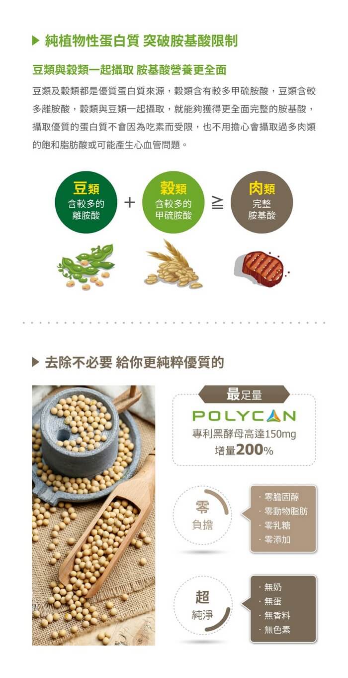- 材質/食材:分離大豆蛋白、米蛋白、碗豆蛋白、葡萄糖、大豆粉、柑橘纖維、酵母抽出物、黑酵母發酵物(含β-聚葡萄糖) 過敏原資訊: 本產品含有大豆及其製品