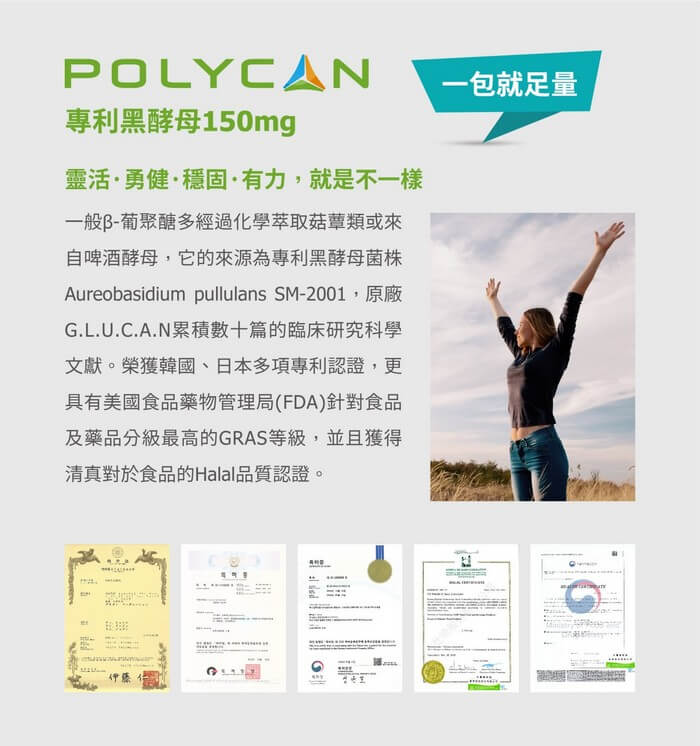 機能性:添加專利黑酵母150mg 富含β-聚葡萄糖。